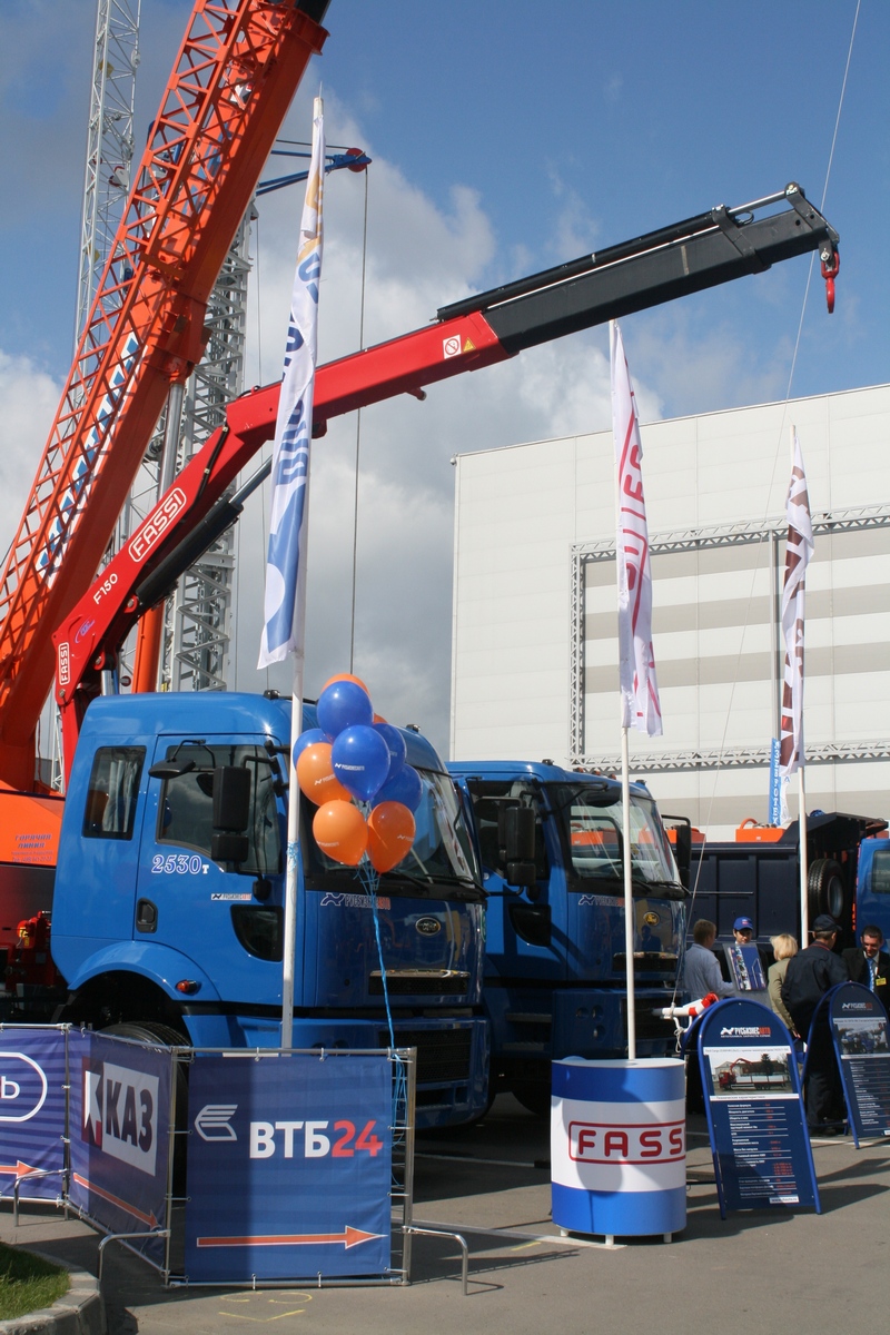 - кран-манипулятор Fassi F150, г/п 6 т на шасси Ford Cargo. Важно отметить, что Fassi – это третий производитель в мире по объему производства кранов-манипуляторов. В России этот бренд является новым, но уже первое знакомство с данной техникой, внушает уважение. Производство манипуляторов неизменно находится в Италии, обеспечивая высокое европейское качество изготовления. На выставку машина пришла буквально с конвейера и является абсолютной новинкой СТТ-2009.