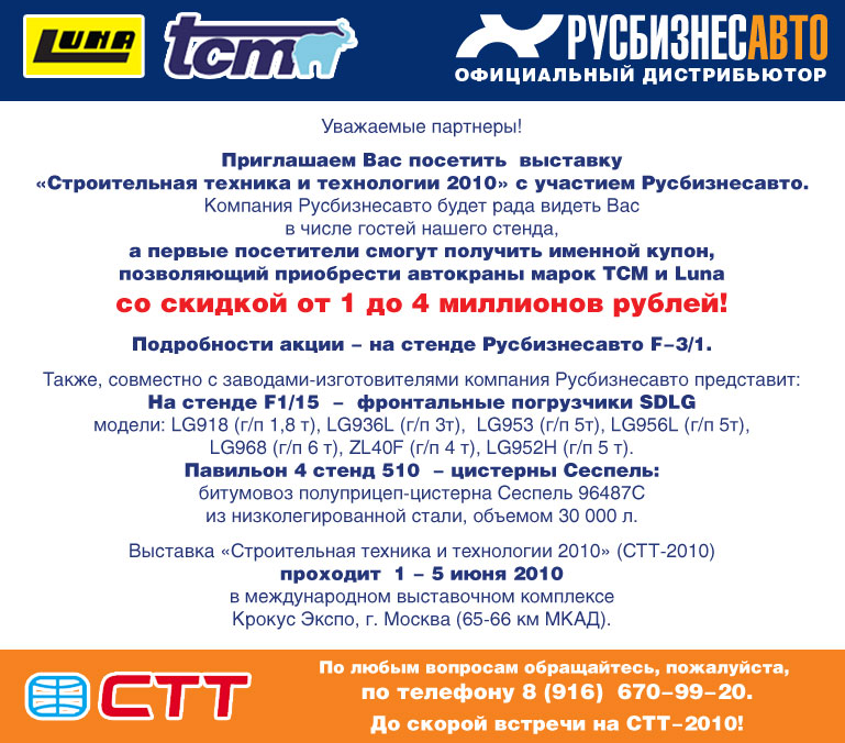 Приглашение на выставку Строительная техника и технология 2010