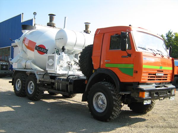 Автобетоносмеситель 69360К на базе полноприводного КАМАЗа 43118 предназначен для доставки готовой бетонной смеси потребителям с сохранением ее свойств в пути следования и выгрузки в место укладки или бетонотранспортные устройства, а также приготовления бетонной смеси из сухих компонентов на строительном объекте.