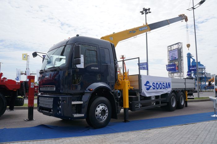 Тема краноманипуляторных установок традиционно важна для компании Русбизнесавто. КМУ Soosan SCS736LII в этот раз смонтирована на специальном шасси Ford Cargo 2526HR с увеличенным задним свесом, позволяющим разместить платформу стандартного размера. Максимальный вылет 6-секционной стрелы – 18,8 м, а максимальная рабочая высота 21,5 м. Грузовой момент – 15 т/м.