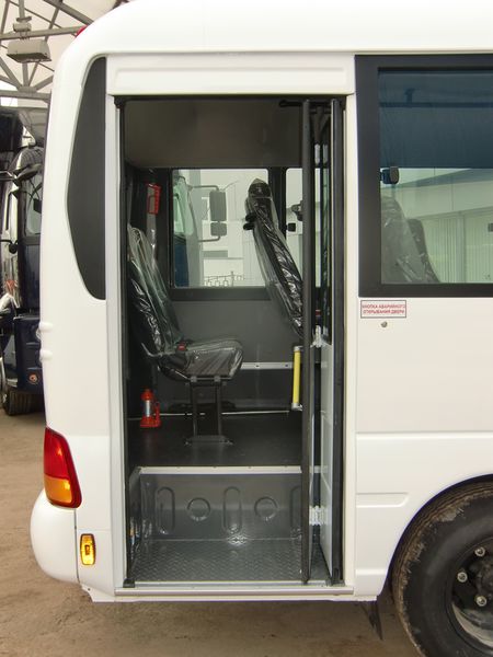 Автобус Hyundai County Kuzbass в версии пригород оснащен комфортными креслами с высокой спинкой и двухточечными ремнями безопасности с перенатяжителями. Их грамотная расстановка, позволила всех пассажиров посадить лицом по ходу движения. Даже напряженный момент, с выпирающей аркой заднего колеса и помещенной рядом с ним печкой удалось обойти. Предпоследний ряд кресел был приподнят, а под ногами появился металлический кожух. И что важно – места для коленей пассажиров все равно осталось достаточно.