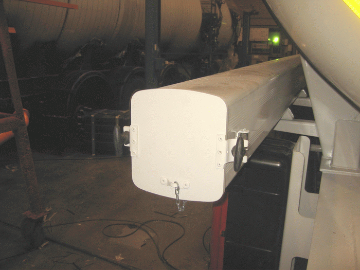 Цистерна имеет один отсек с четырьмя заливными горловинами. Геометрическая емкость составляет 30м3, но для эксплуатации в щадящем режиме рекомендуется заполнять ее на 85 % от полного объема. Горловины верхних наливов выполнены из полированной нержавеющей стали европейского производства. Каждая крышка горловины оснащена съемной моющей головкой, которая обеспечивает 360° промывку секций. Количество люков определено в цистерне не случайно – именно такое количество горловин при общей длине 11400 мм позволяет обеспечить наиболее полную и качественную промывку. В стандартную комплектацию входит экологический короб, расположенный вокруг заправочной горловины. Данный короб не только исключает пролив на боковые поверхности, но и сохраняет эстетичный внешний вид цистерны. Для удобного обслуживания вдоль цистерны расположена алюминиевая противоскользящая решетка с поручнями. Применение алюминия гарантирует высокую коррозийную стойкость и долговечность подвижных элементов. Складной стальной поручень приводится в действие с земли.