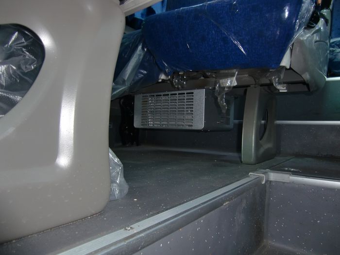 Отдельно следует упомянуть систему кондиционирования воздуха. В салоне пригородной версии установлены короба с разводкой под индивидуальные блоки освещения и обдува, а вот самого кондиционера нет, только люки в крыше и форточки в окнах. Но при желании можно у официального дилера установить в моторный отсек компрессор, на крышу испаритель и все – перед вами полноценный автобус с системой кондиционирования.