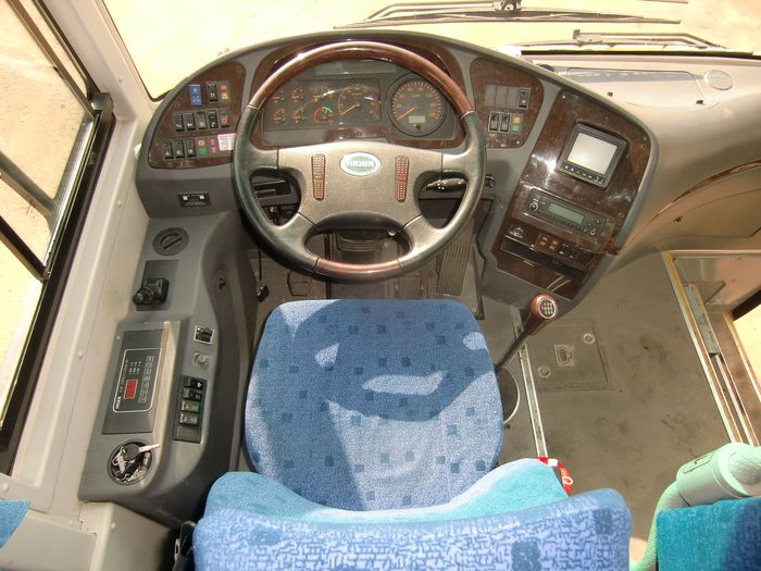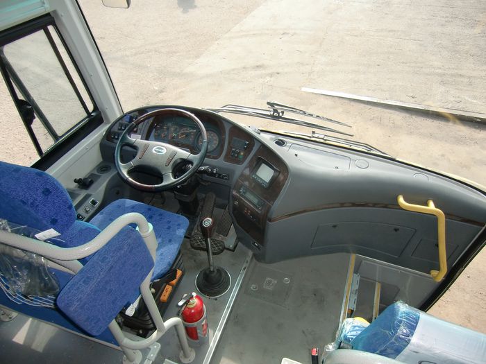 Компоновка Higer 6826Q покажется читателям более знакомой. За исключением широкой, как и на пригородной версии Higer 6826GQ 1-й двери, салон почти идентичен салону автобуса Higer 6885. «Почти», потому что в «6826» меньше кресел – по левому борту на один ряд, а по правому уже на два. В остальном все тот же междугородник, только преимущество входа в первую дверь более очевидно.