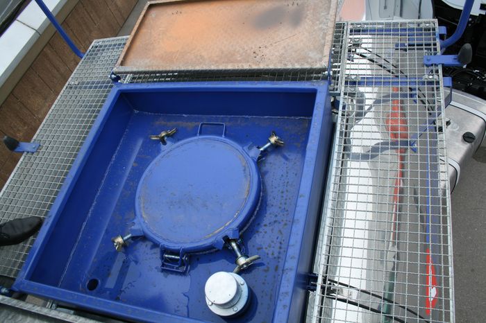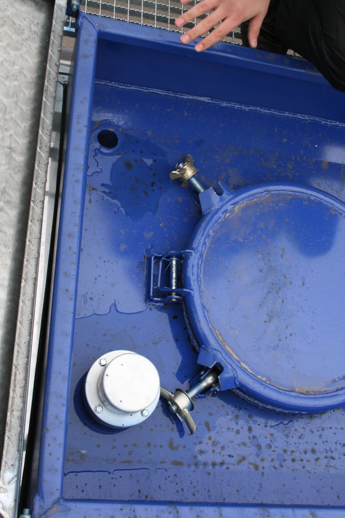 Цистерна 964870 имеет 1 отсек с волнорезами. Отсек оснащен горловым кольцом и люком с соответствующей крышкой и донной прокладкой. В стандартную комплектацию входит экологический короб, расположенный вокруг заправочной горловины. В коробе расположен специальный дыхательный клапан, выдерживающий высокие температуры и вязкую среду. Для удобного обслуживания заливная горловина окружена нескользящей пешеходной площадкой. Модульная конструкция площадки выполнена из оцинкованных блоков, что обеспечивает долгую сохранность поверхности и стойкость к агрессивной среде. Цистерна оснащена безопасной металлической конструкцией, механизм подъема перил в которой надежно и просто фиксируется с земли.