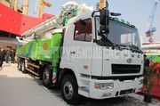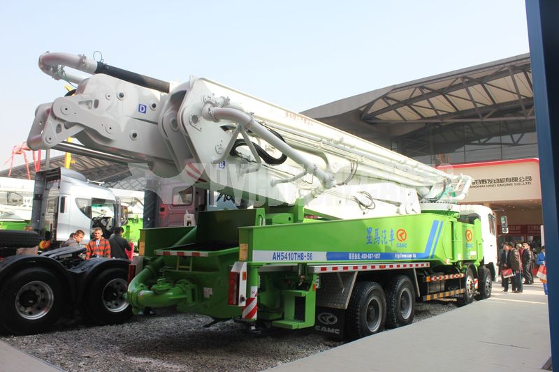 Полноценной новинкой стал и 56-метровый бетононасос AH5411THB-56 на шасси CAMC HN5410 (8х4). 5-коленчатый подъемник рассчитан на подачу бетона на высоту до 52 метров с давлением 9 МПа. Угол вращения установки 365°, а полная масса бетононасоса - 41 000 кг. Кстати, по итогам выставки Шанхайская Строительная компания приняла решение закупить партию этих бетононасосов.