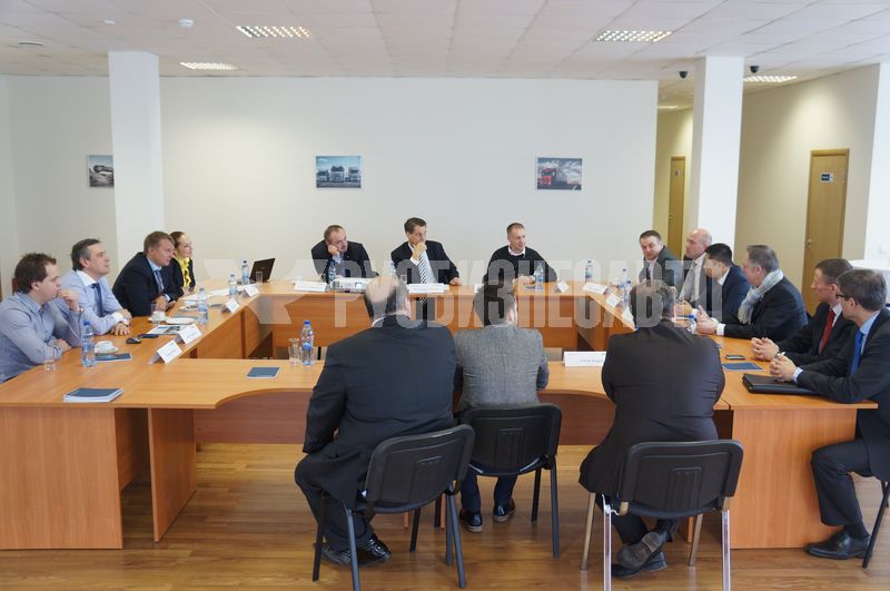 Немецким гостям были продемонстрированы клиентская и сервисная зоны, склад запчастей и стоянка техники, а главное представители Daimler смогли оценить возможности центра в реальной рабочей обстановке. По итогам посещения дилерского центра было проведено совещание с участием представителей ООО "РБА-МБ", Daimler и Мерседес-Бенц Тракс Восток, на котором были отмечены высокий технический уровень нового центра и потенциал его развития. Также Генеральным директором ОАО "РБА-МБ" Тараскиным Юрием были озвучены возможные перспективы дальнейшего сотрудничества между компаниями, в частности открытие компанией ООО "РБА-МБ" новых дилерских центров Mercedes-Benz в других регионах России.
