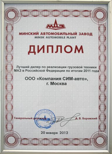 В гостинице Националь г.Москва состоялась ежегодная конференция официальных представителей грузовой и пассажирской техники МАЗ. Компания Русбизнесавто получило титул «Лучший дилер 2011 года».