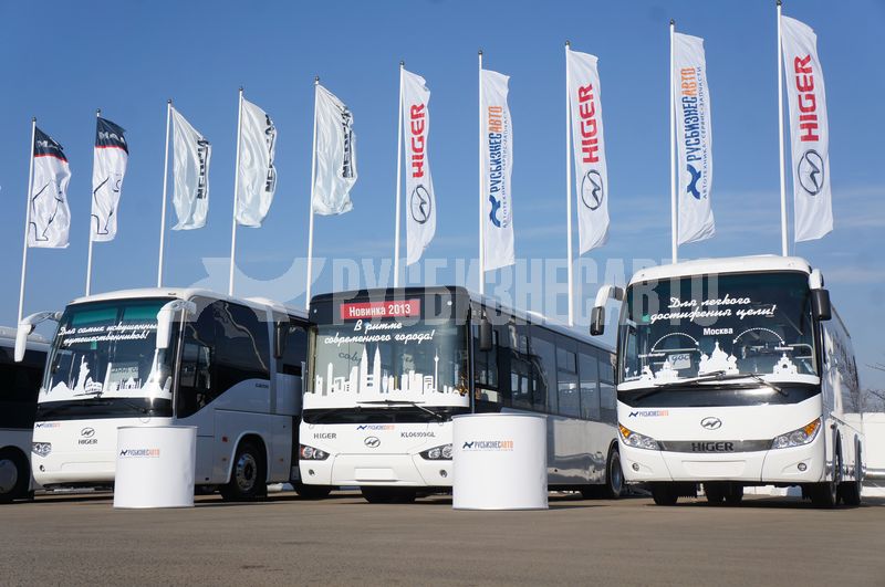 "Для быстрого достижения цели компания Русбизнесавто продемонстрироовала новинку прошлого года, 35 –местный автобус Higer KLQ6928Q. Машина предназначена для работы на коротком междугороднем плече в 150 – 200 км. Автобус привлекает сочетанием разумной цены и комфорта для пассажиров.