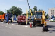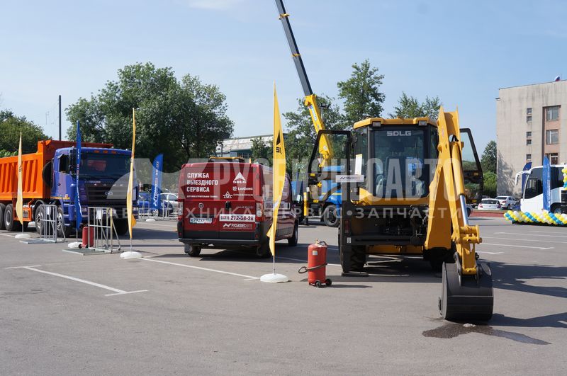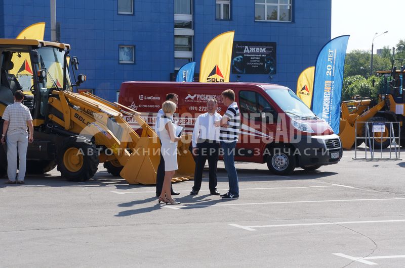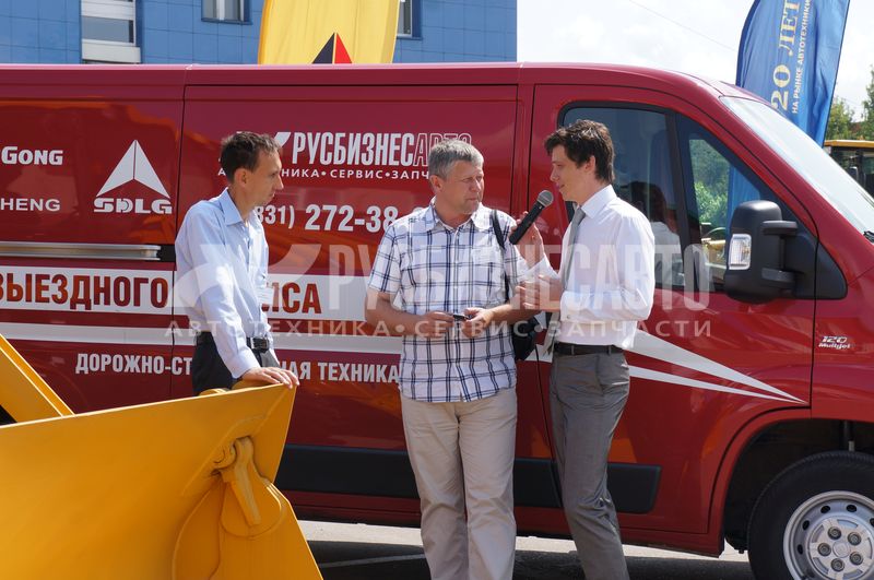 На площадке перед головным офисом в Нижнем Новгороде выстроилась техника, пользующаяся повышенным интересом у покупателей. От автобусного раздела экспонировался междугородный Higer KLQ6119Q. Самосвалы представлял четырехосный CAMC HN3310 с двигателем Euro4. За седельные тягачи выступал МАЗ-5440 "Простор". КАМАЗ-65117 с крано-манипуляторной установкой SOOSAN SCS736 взмыл свою стрелу вверх, демонстрируя возможности бортовых автомобилей с КМУ. Ну, а по тематике ДСТ во всю ширь развернулась техника SDLG: экскаватор-погрузчик LGB677 и фронтальные погрузчики LG918, LG933L, LG956L. А самым наглядным примером лозунга "Русбизнесавто своих в беде не бросает!", служил мобильный выездной сервис на базе фургона Fiat Ducato. Так что работы у менеджеров и механиков было хоть отбавляй. Итоги – предварительная договоренность о продаже автобуса Higer KLQ6119Q и фронтальных погрузчиков SDLG.