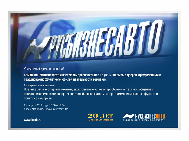 Приглашение на День Открытых Дверей компании Русбизнесавто в Челябинске