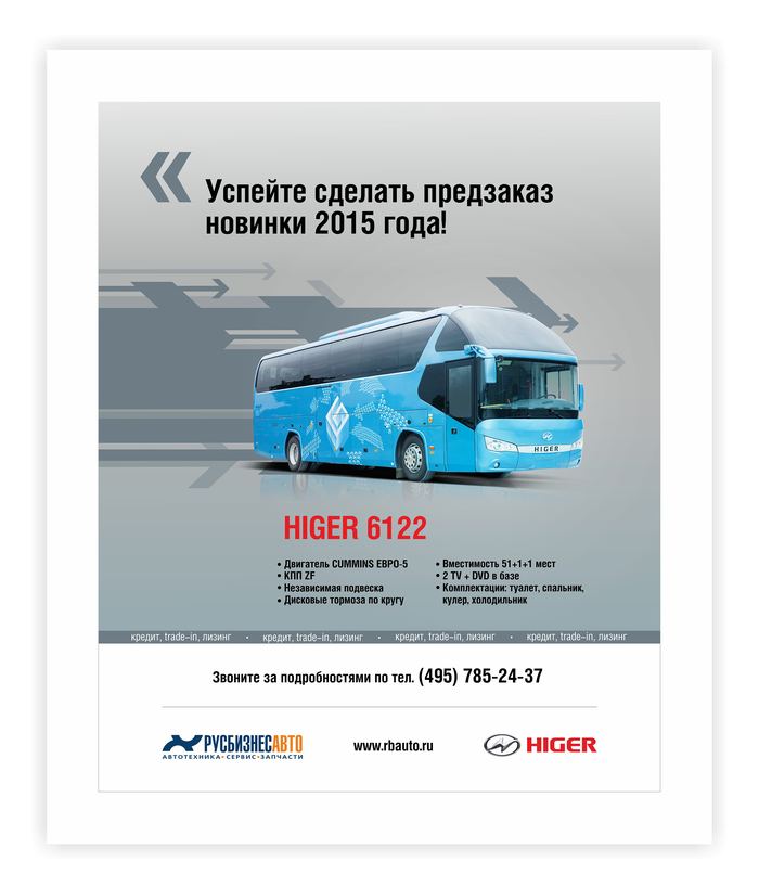 Все перечисленное делает новую модель Higer KLQ6122В более предпочтительной для покупки в 2015 году среди автобусов большого класса.