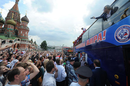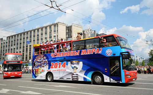 27 мая члены сборной России - Минского чемпионата мира по хоккею совершили триумфальную поездку по Москве на автобусах Хайгер. Маршрут на двухэтажных туристических автобусах, брендированных под сборную, прошел от Пушкинской площади до Кремля и составил около 3 километров.