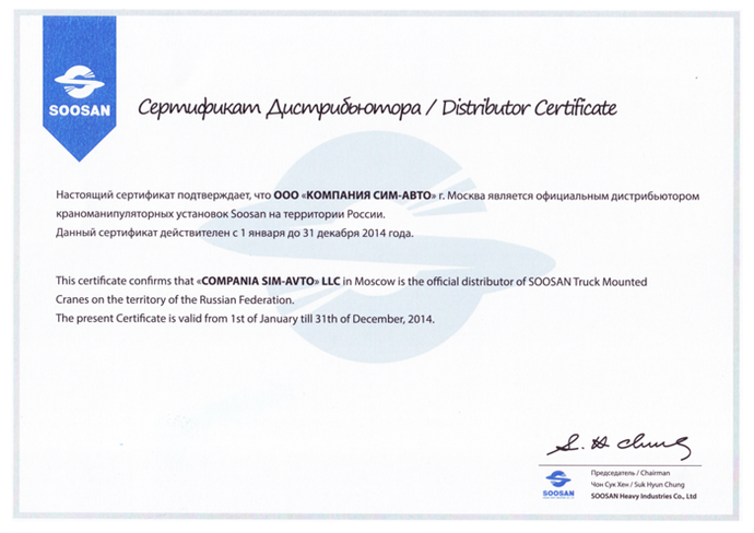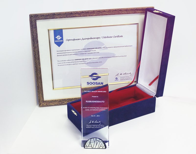 В 2014 году компания Русбизнесавто подтвердила свое право на дистрибьюцию техники производства Soosan Heavy Industries.