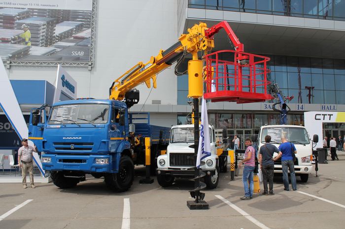 Особое внимание у посетителей стенда вызвала модель Soosan 876L с буром на шасси КАМАЗ 43118. Данная модель предназначена для установки столбов и опор, что значительно облегчает трудовой процесс.