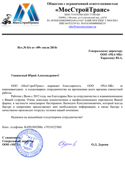 ООО "МосСтройТранс" ОАО "НПП "Рубин" ООО "Сервис Энерго Резерв"