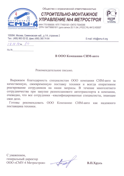 ООО "Шин Тег" ООО "Строительно-монтажное управление №4 метростроя " ООО "Транзит"